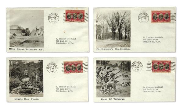 1931, 2¢ Yorktown, First Day Cover Collection (Scott 703), 63 different including Roessler (5 including 703-4d with East Orange NJ cancel), Stoutzenberg, Trouby (703-6a), Willard & Standish, Ioor (703-16, 703-16a with a block of 4 and a Wethersfield rubberstamped cachet (we sold a similar example in our Feb. 2022 Flagship sale (incorrectly described as 703-16b) for $160), and 703-16b), Gundel (703-18a), Hacker (703-19b), Bernet, Gorham, 1st Richardson (703-23a & 703-44b), 1st Aerorprint (703-25, 703-25a with Richmond VA cancel, 703-25c, 703-25d with Richmond VA cancel), 1st Darrell Crawford (703-29), 1st Barcus (703-32), 12 Beazells (703-34 to 703-34l; catalog $350 each), 1st Max Pollack (703-37), Johnson (703-45a), 1st Savage (703-50), Egolf (703-51 & 52), and Rogers (703-56), Very Fine lot that is fully imaged online, Nos. 703-34i and 703-34l sold for $200 & $170, respectively, in our Jan. 3, 2021 Sunday night auction. Shipping charges apply - weight 3 lbs. Planty $6,000+. (Video for this lot) (Image)