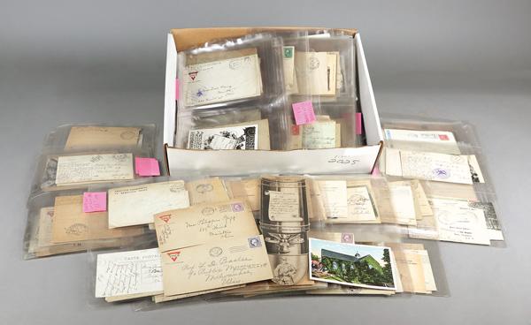 The (not so) Great War Cover Collection, 1917-18, approximately 250 cards and envelopes in clear pages; bullet postcard underpaid (Postage Due), real photo postcards, supplied stationery (Knights of Columbus, Red Cross, and YMCA), AEF Blue Envelopes, APO mail from Antwerp, safe arrival postcards, Buy Liberty Bond markings, pictorial cancels, censor markings, numerous soldier letters, NO RECORD, and oher interesting auxiliary markings; THIS is Postal History, Fine. Shipping charges apply - weight 8 lbs. (PDF for this Lot) (Image)