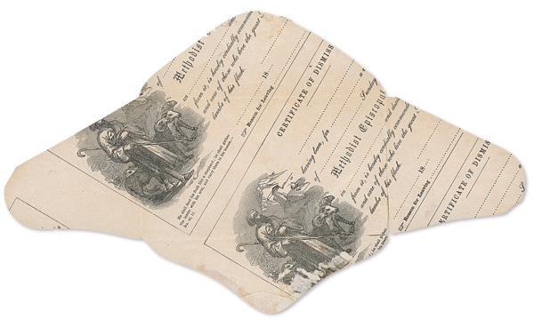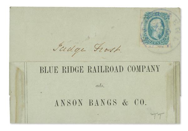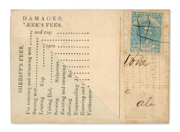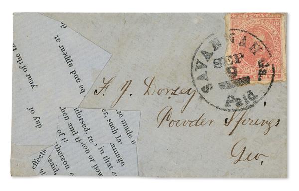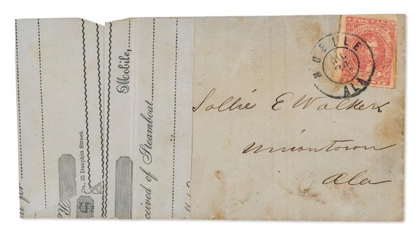 1864 (Aug. 17) Adversity cover from illustrated Methodist Episcopal Church blank uncut sheet of certificates of dismissal, #12 with full to large margins all around tied by "Mobile Ala. Aug. 17" double circle datestamp, addressed to "Mrs. Jno. H. Goodman, care D.W. Goodman, Esq. Red Bluff PO Mobile & Ohio RR", ex-William R. Weiss and pictured on page 81 of his book Confederate States General Issue Stamps used on Adversity Covers, 1861-1865, currently available from the CWPS for $6.