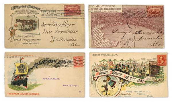 Advertising Cover Collection, 1898-1900, 85 including a few outside the year date range, wide variety of products and topics including cigars, hardware, guns, with an emphasis on carnivals and fairs, some multicolored and all-over designs including many with advertising on both sides, 5 with original enclosures, in cover album, generally Very Fine and fully imaged online, ex J. Leonard Diamond. Shipping charges apply - weight 3.2 lbs. (PDF for this Lot) (Image)