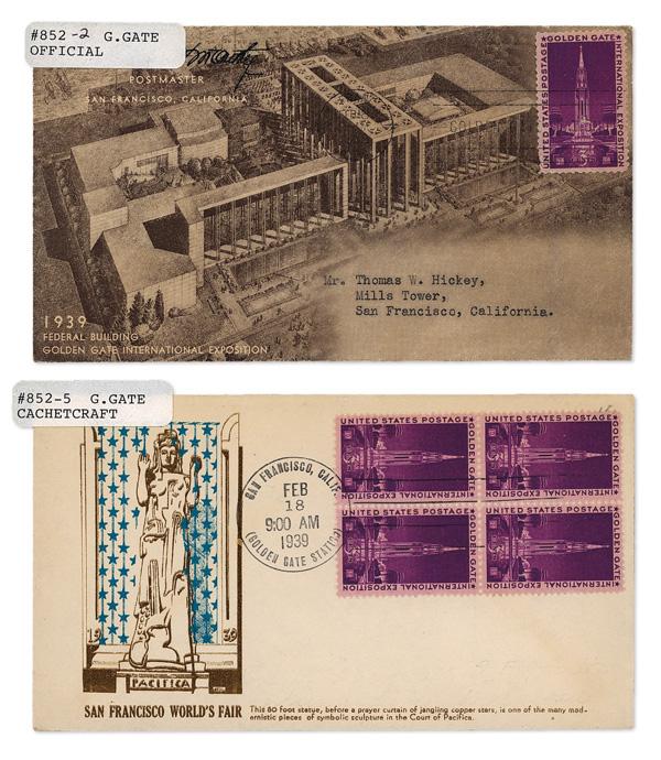 "Gate Keeper" Eye-Catching FDC Collection of Golden Gate Exposition, 1939, A Lindner binder with a total of 37 first day covers from the 1939 Golden Gate International Exposition from such cachetmakers as Calcraft, Crosby, Grimsland, Ioor, Linprint and others, generally Fine to Very Fine, entirely viewable online. Shipping charges apply - weight 3 lbs. (Video for this lot) (Image)