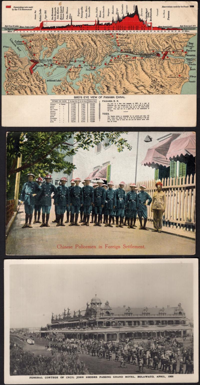 Abt (900) virtually all vintage cards in an old shoebox, good variety of Europe & Latin America, esp Canal Zone, Costa Rica, France & GB; some WWI views, military, royalty, city scenes, locals, more; a few domestic mixed in, some mailed, some typical wear, gen F-VF (Image)