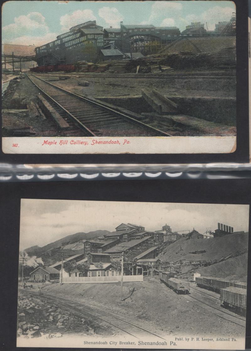 COAL (57) PPC + (3) souvenir packs, mostly linen era cards showing coal mines, collieries, miners, mules, coal cars & more, from central Pennsylvania incl Mahanoy City, Ashland, Shamokin, Pottsville, others; a few vintage, minor wear, gen F-VF (addl binder w/ photographs of coal mining postcards, incl some not in this collection) (Image)