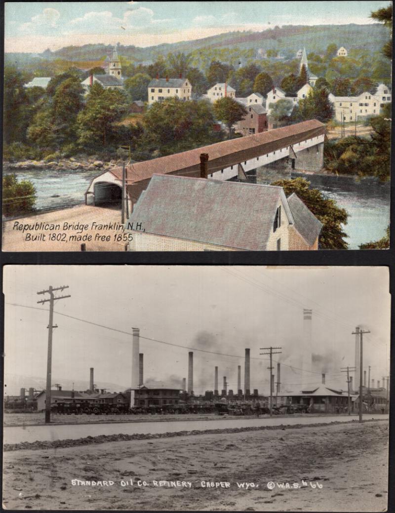 SCENIC Large Accum abt (3500) in (5) shoeboxes from long-time accumulator, all vintage incl souvenir postcards, private mailing cards, undivided backs, RPC, B&W and full color; small town scenes, factories, libraries, fire houses, street scenes, quarry, churches, mills, agriculture & industry; a high percentage are from New England; many mailed, generally better quality cards w/ only typical wear, gen F-VF (Image)