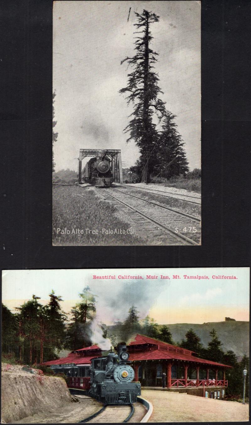 TRAINS Impressive Accum of cards filling (4) shoeboxes, trains on tracks, at station, bridges, streetcars, tourist trains, incline, depots, large stations & other infrastructure, also many city or town scenes w/ trains or trams as part of the background, cuts in mountains, views w/ tracks & more; unsorted but noted larger groups of New England, NY, NJ, OH & CA; virtually all are vintage, some RPC, many mailed, some typical edge wear, gen F-VF (Image)