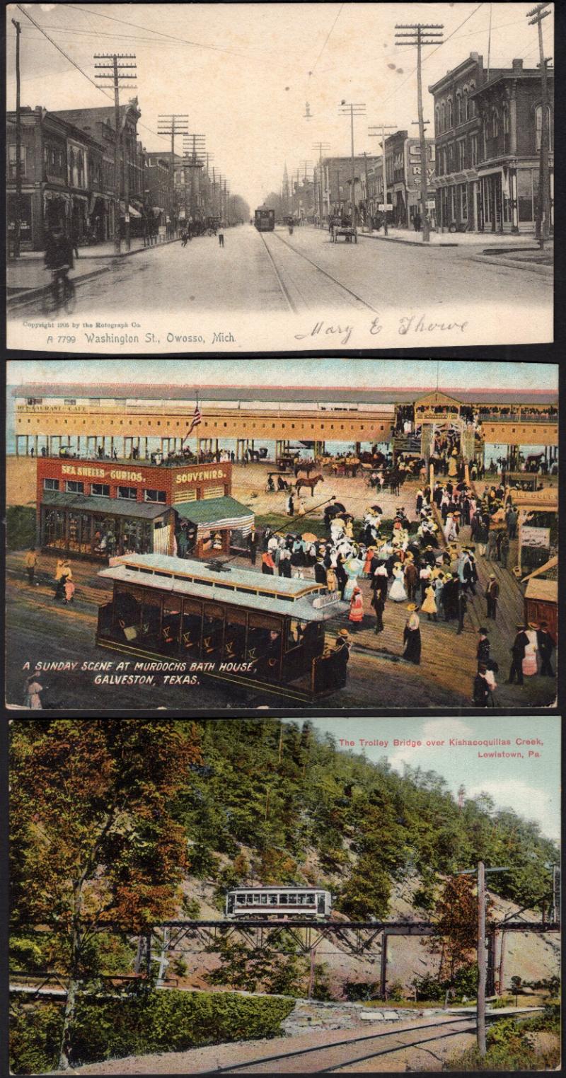 TRAINS Accum of vintage cards filling (4) long shoeboxes; trains, city trams/trolleys, tracks, rural scenes, small depots & city stations, bridges, wreck, city views w/ trains or trams as part of the street scene, subway station & more; great scenes, much New England, many mailed so some typical edge wear, gen F-VF (Image)