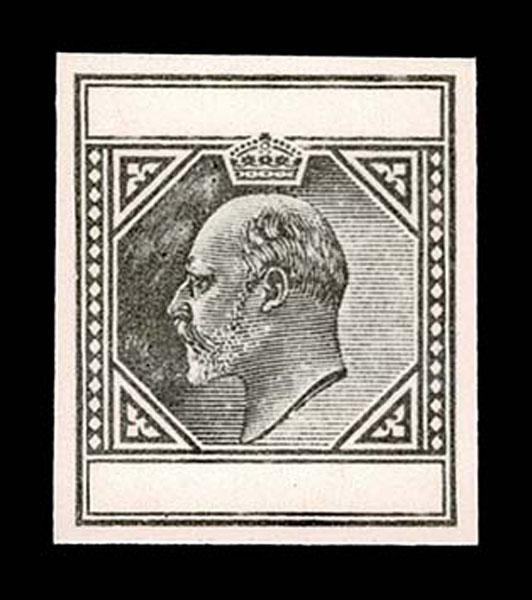 SPERATI Reproduction of the King Edward VII completed design proof. omitting country name and value tablet blank, stamp size and bearing violet "SPERATI REPRODUCTIONS" hand stamp on reverse, very fine. Scarce. Ex Maisel