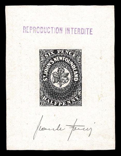 FORGERIES & FANTASIES: Newfoundland 6 and /12 Pence: Type A Die Proof in black, signed by Sperati, Extremely fine. Sperati handstamp on reverse. Ex Walske