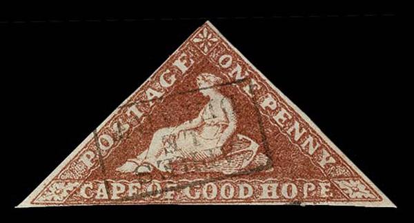 FORGERIES & FANTASIES: CAPE OF GOOD HOPE 1p brick red. "cancelled by forged violet boxed "APRES LE DEPART". Even the stamp is a pretty good fake.