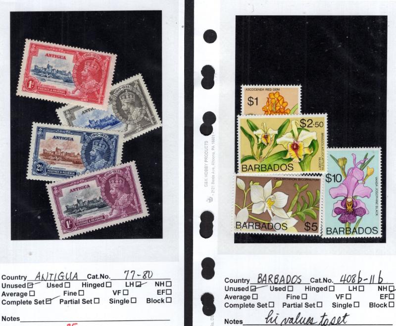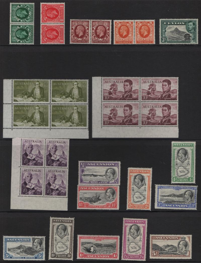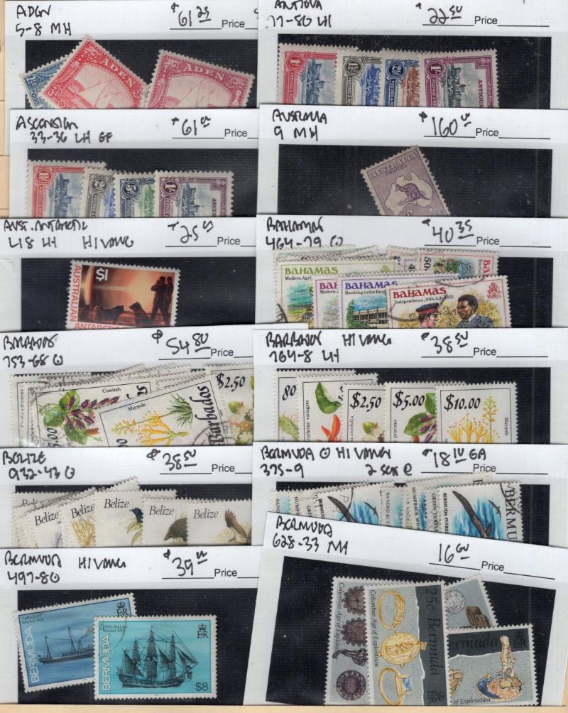 Accum (9) countries w/ (1000+) */O owner IDed & CV $3,891 (NV) w/ many better items from Australia over (100+) King George V, great study group for varieties & pmks, Bahamas unused #23 & used 30 (2), Barbados unused #210-12, 216-27, Bermuda unused 28, 35, 46, 48, 57, 58, 59, 75 & used 45, 75, Gibraltar unused #1, 8, 10, 14, 23, 31, 31A, 32, 36, 39, 41, 42, 68, 69, 70, 71, 96-99, 108a, 109, 110a, 111a, 114a, 117a, Leeward Is used 41-45, 71, 73, 96-99, Malaya group of (50+) mostly unused w/ dup, Mauritius unused 10, 20, 59, 60, 61, 115, 204-07, 219, 220, 221 & used 67, E4, E5, Malta many Blks, 620-24 Blk, 643-60 pairs, 650-53, 808-11 Blks, 837-40 Blks & many more Malta items, few flts in this whole group but mainly VF or F-VF H/NH (Image)