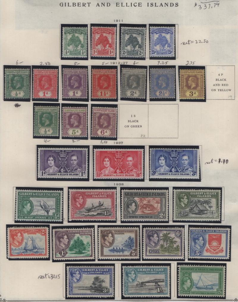 Collection (7) diff countries (100s) */O owner IDed & $2,223 (CV) incl Gilbert & Ellice & Gold Coast w/ unused #8-11, 33-36, 40-50, plus Gold Coast unused #106, 107 used 42, India w/ abt (75) mainly unused, Malaya abt (150) */O, Orange River 1894-1900 unused 11, 22, 51, 52, 55, 61, 62, 64, 66, 68, Nigeria 1953-56 unused 88, 91, Straits Settlements used 12, 13 (3), 14, 16, 42, 45, 48, 53, 55, Trinidad & Tobago unused 34-40, 42-46, 50-61, 64-65, 82-83, 89-102, used 42 & so much more w/ value, few flts but most VF H/NH (Image)
