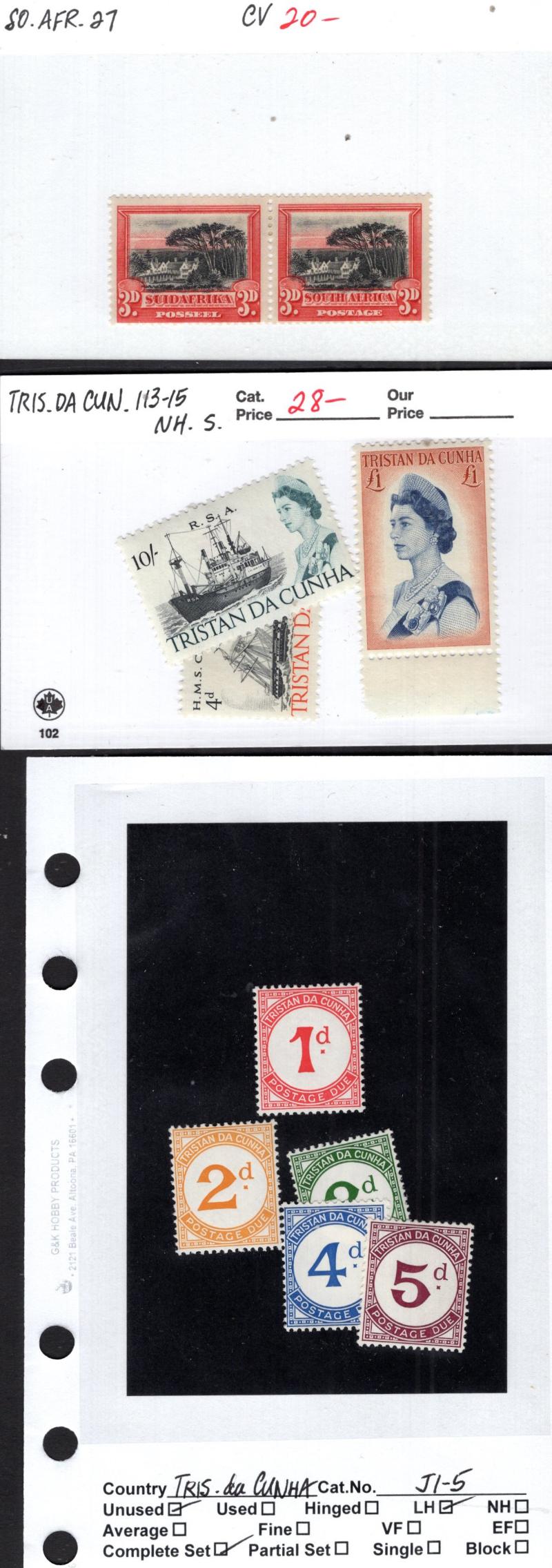 Dealer Stock (100s) */O mostly diff on Scott IDed dealer cards & lot pgs. many better incl unused Ascension #40-46, 138-51, 196-21, Bechuanaland 180-93, Lesotho 351-55, Malawi 40a, 518-33, Nyasaland 39//46, 97-111, Rhodesia & Nyasaland 165-71, St Helena 209-23, Sierra Leone 195-207, Somaliland 116-26, 128-39, Tristan Da Cunha 42-54, 113-15, J1-5 & others, cond varies gen F-VF H/NH (Image)