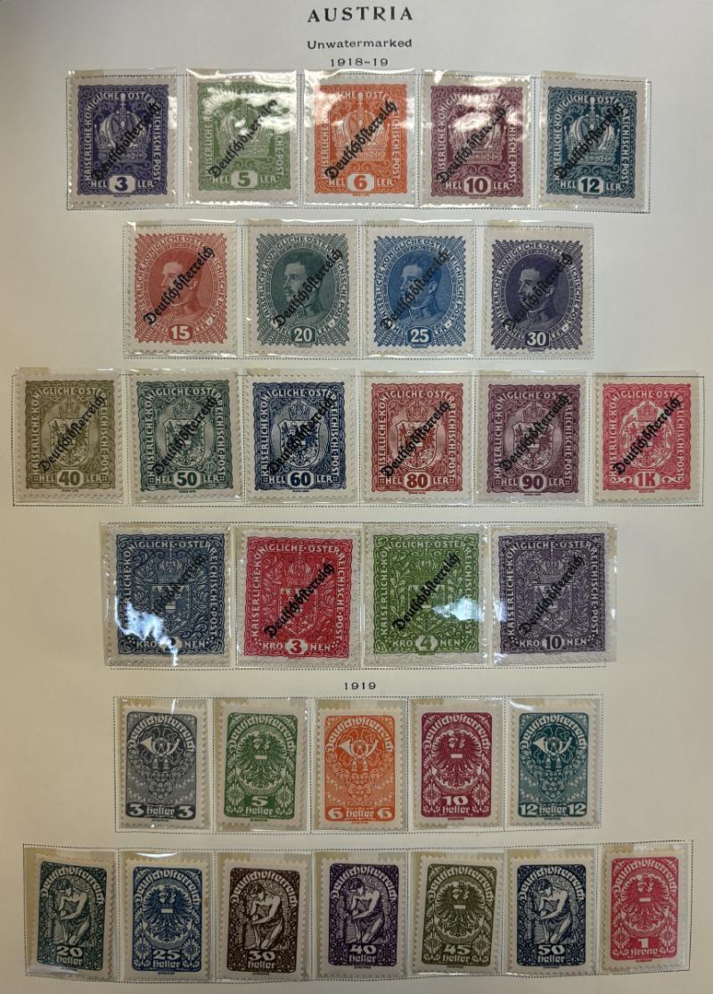 (2) Collections (1000s) */O in Scott binders & pgs, owner IDed & CV (NV) incl: Album Austria 1850-1966, semi 1914-65, plus airs & Officials incl unused #565-67, 599-603, 618A-30, B3-7, B171-234, B245-51, B252-59, B260-63, C4-11 & used #1-5, 6, 12, 13, 21, 32-33, 34-40, 64, B264-67, B268-71 & a binder of Switz pgs 1850-1990, 1913-90 semi postal, 1919-72 airs, postage dues & Officials incl unused 66-68, 73, 189, 215, B80 S/S & used 4, 21, 31, 37, 38, 40, 41-47, 50, 52-57, 59, 69-72, 74-76, 82-88, 98-100, 200-03, 219-25, 227-36, 238-41, 256-67, B2-3, B5-6, B10-11, B11-14, B25-28, B32, B40, B41-44, B49-52, B77-79, C8, C9, C10, C12, C15, C16, C27-35 & so much more, few flts but mainly F-VF