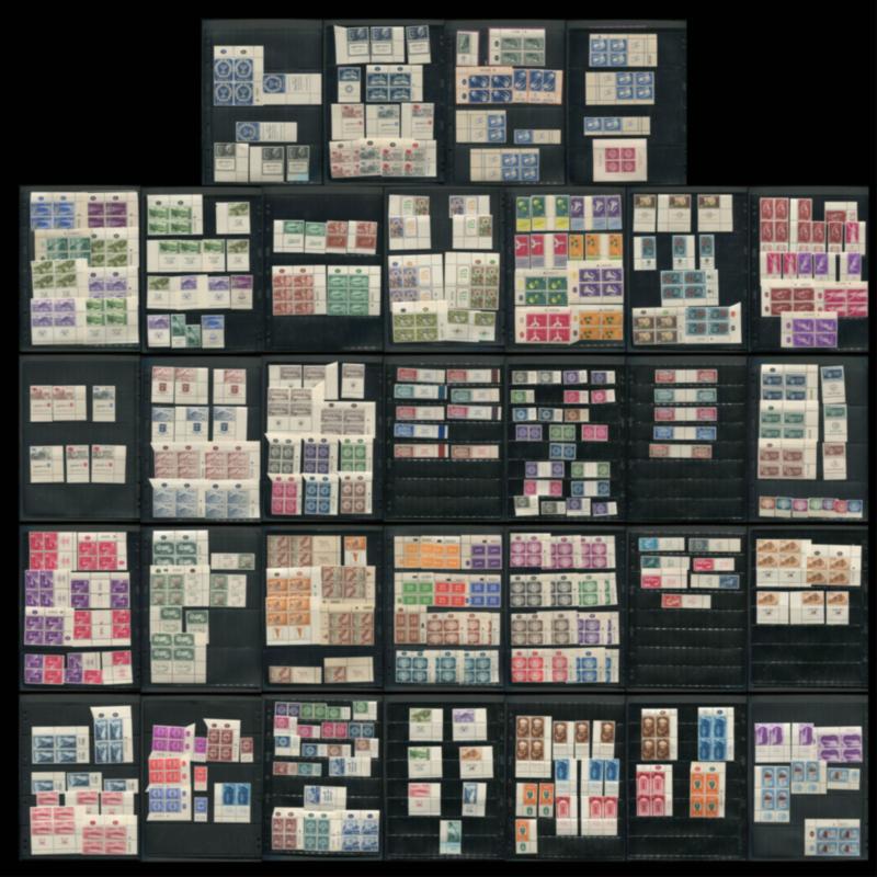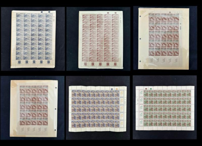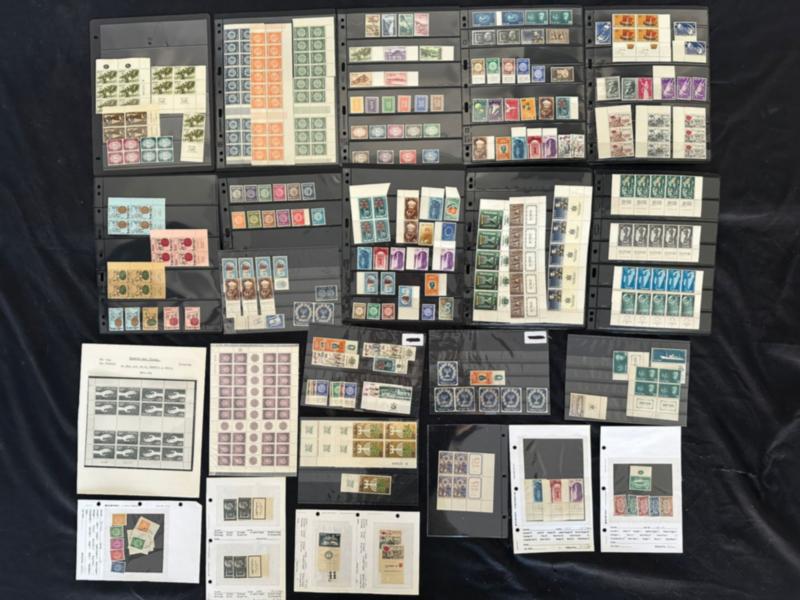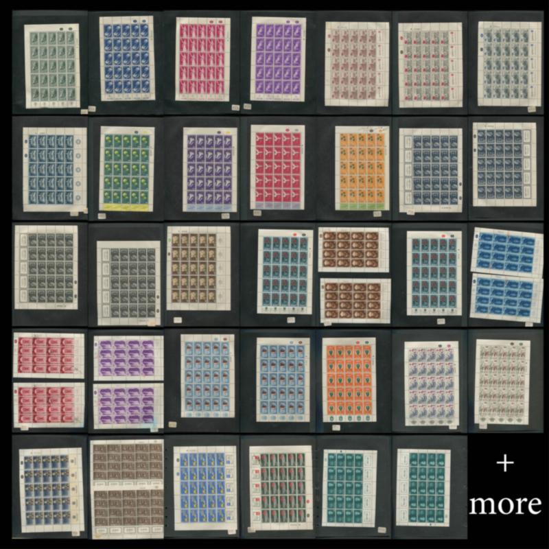 Israel 1951 - 1955, # 51 / #104, #C7 / #C15, #J12 / J20, a group of 70+, MNH complete sheets, Scott value $2710, some minor duplication, appears f-vf (Image)