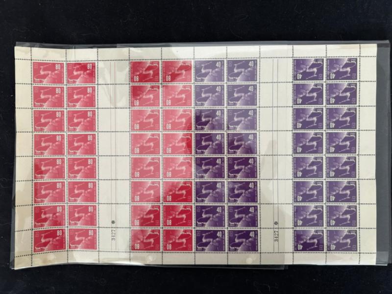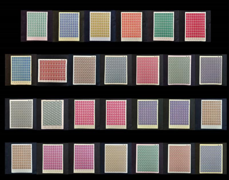 Israel 1949 -1951, #24 / #47, a group of MNH complete sheets of 50, includes #24 250p (sheet split in two), Scott value as singles $1237.65, some perf separation in selvedge, otherwise f-vf (Image)