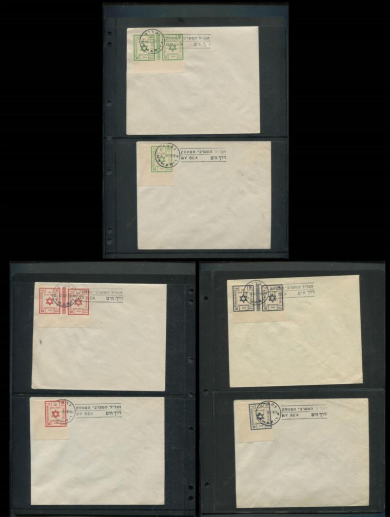Israel 1948 Interim Nahariya Locals, Bale #108 - #110, sets on unaddressed covers in pairs and singles, on cover dated 11th and 12th May 1948, cancelled by Bale type C8, Bale value on cover $900+, f-vf (Image)