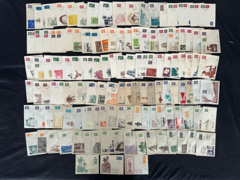 Israel 1950 - 1958 a selection of 170+ covers which includes with tabs, without tabs and plate blocks, some duplication throughout, appears f-vf (Image)