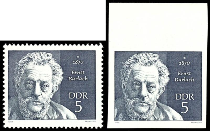 5 pfennigs Ernst Barlach, variety "imperforated", upper margin copy, mint never hinged, very fine. (1534U)