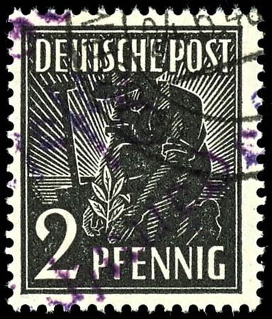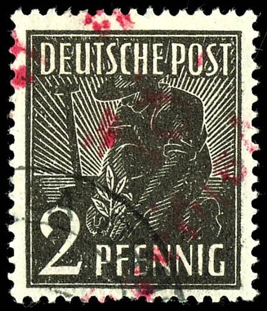 2 pfennigs with red overprint 16 Graefenroda, used, perfect, study group group 9, expertized from Heintze BPP, Michel / study group 155.- (166III) 2 Pfennig mit rotem Aufdruck 16 Gräfenroda, gestempelt, einwandfrei, Arge Gruppe 9, geprüft v. Heintze BPP, Mi./Arge 155.- (Image)