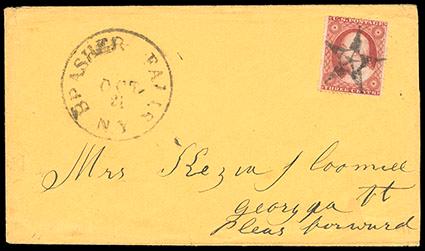 Star within a Star of Brasher Falls, N.Y. Bold and complete fancy, barely ties 1857 3¢ on immaculate cover to Georgia, Vt, additional manuscript "Please forward" at bottom, cancelled by well struck "Brasher Falls NY Oct 6" balloon cds, Very Fine. Scott No. 26; Estimate $100 - 150. US$100-150 (Image)