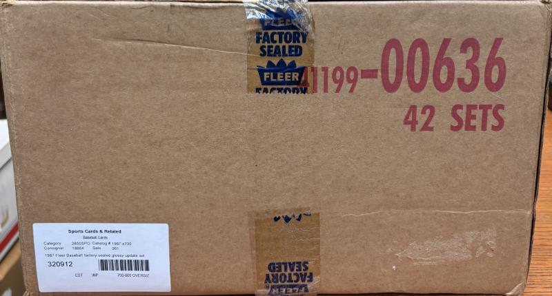 1987 Fleer Baseball factory sealed Glossy Update set case w/ (42) factory sealed sets; ea set contains (132) cards & (22) logo stickers, G. Maddux rookie; gen MT (Image)