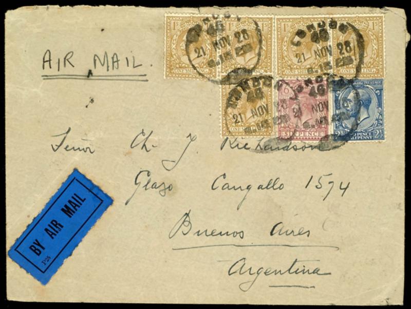GROSSBRITANNIEN 1928, Flugbrief ab London 21.11.28 mit AÉROPOSTALE nach Buenos Aires, seltener früher Beleg mit waagerechtem Bug (Image 1)(Image)