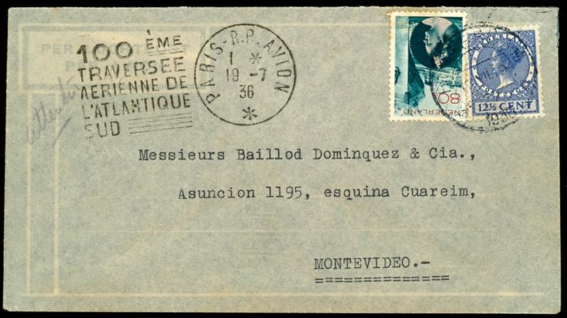 Netherlands 1936, airletter from Rotterdam 17.7.36 via Paris with additional "PARIS 19.7.36 100 EME TRAVERSEE AERIENNE DE L'ATLANTIQUE south" with AIR FRANCE to Rio de Janeiro