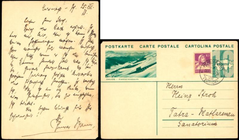 MANN, THOMAS, 1875-1955, famous German writer and narrator, literature Noble prize winner, emigrated 1933 before the nazis to Switzerland, card from Kuesnacht / Zurich 26.12.33 to Tatra Matlarenau to the Swiss newspapermen Henry straw with a lot of text and autograph full signature