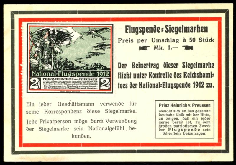 1912, Flight contribution seal stamp on unused, form card \the net avails this seal stamp tiles controlled of the Reich Committees the Nationally flight contribution 1912 to\ from Gerhard Romans, Hamburg; rare! 1912, Flugspende Siegelmarke auf ungebr., Vordruckkarte \Der Reinertrag dieser Siegelmarke fließt unter Kontrolle des Reichskomitees der National-Flugspende 1912 zu\ von Gerhard Römer, Hamburg; selten! (Image)