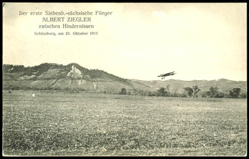 1913, Albert Ziegler, unused photo postcard \the first Siebenb. Saxon airman\, Schaessburg at the 23. October 1913, printing Drotleff, Hermannstadt 1913, Albert Ziegler, ungebr. Fotokarte \der erste Siebenb.- sächsische Flieger\, Schässburg am 23.Oktober 1913, Druck Drotleff, Hermannstadt (Image)