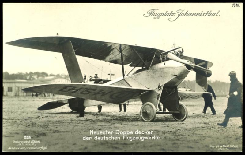 1914, airfield Johannisthal, \newest biplane of the German airplane works\, unused would sink card 1914, Flugplatz Johannisthal, \Neuester Doppeldecker der deutschen Flugzeugwerke\, ungebr. Sanke Karte (Image)