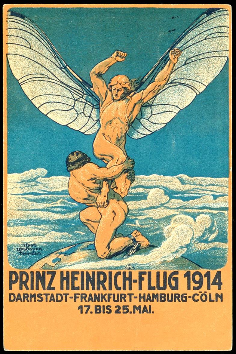 1914, Prince Heinrich flight, Darmstadt - Frankfurt - Hamburg - Cologne 17. to 25. May, coloured photo postcard from Frankfurt 18.5, in addition to it vignette in the identical subject from upper margin ( ** ) 1914, Prinz Heinrich Flug, Darmstadt - Frankfurt - Hamburg - Cöln 17. bis 25. Mai, farbige Fotokarte von Frankfurt 18.5., dazu Vignette im identischen Sujet vom Oberrand (**) (Image)