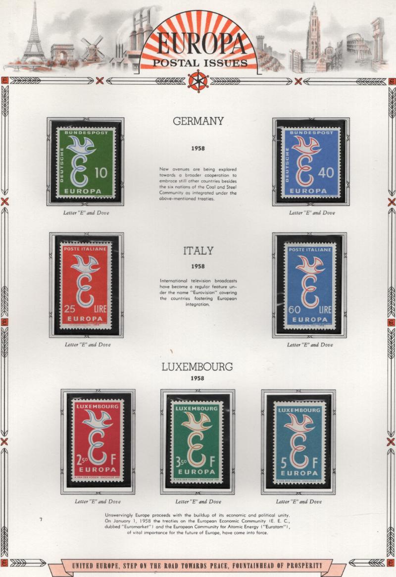 EUROPA in (2) binders W/A pgs starting at 1956-80, no stamps for the following years 1957, 1960, 1969, 1972-74 but other years are 90% full w/ cplt sets & some full sheets or sheetlets, some better items, nice clean & fresh group, VF & most NH (Image)