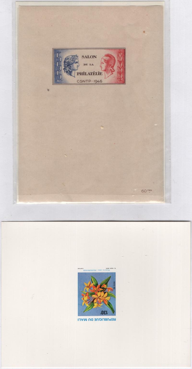 PROOFS Accum couple (100) WW proofs, large number are modern French Africa imperf deluxe proofs; earlier engraved Morocco, Tunisia, Monaco deluxe; variety of topics incl Holy Year, Scouting, Animals, Native Art, others; gen VF (Image)