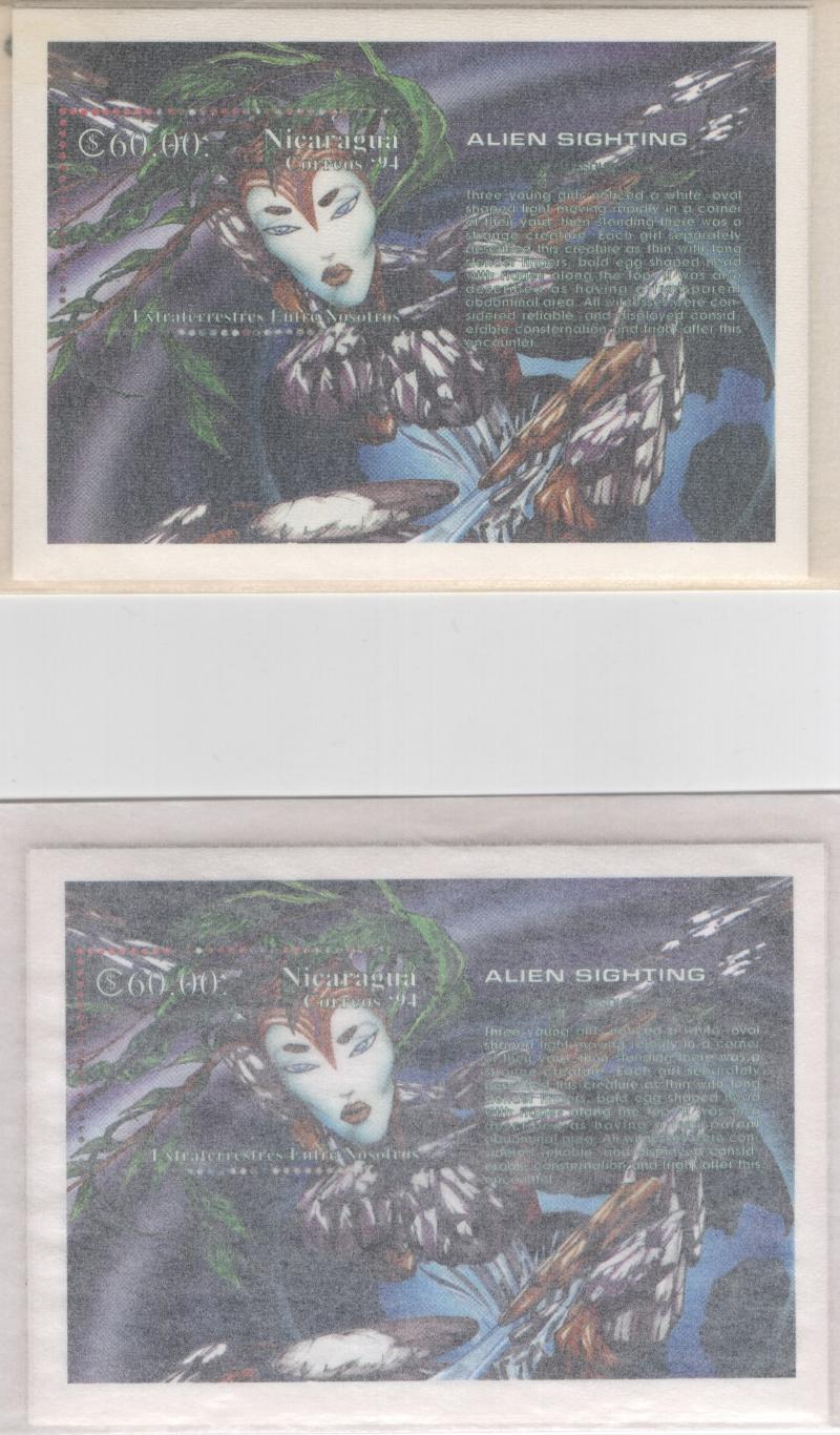 SOUVENIR SHEETS: Dealer Clearance of two popular S/S sets; MONACO 1949 UPU set of (4) perf & imperf gummed S/S (Yvert 2, 2a, 4, 4a); NICARAGUA 1994 Aliens (2) sets of (8) S/S; all NH VF (Image)