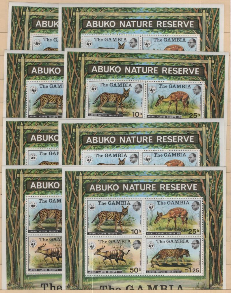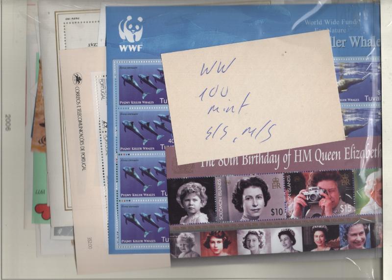 WORLD WILDLIFE FUND abt (200) sheets/sheetlets or S/S & few Blks or strips, incl Gambia #344a (8), 407a (11), Ghana 625 (10), Grenada 856 (20), Laos 517-20 (76 sets), 1174-77 (60 sets), Malawi 322a (3), Swaziland 405 (2), others, probably all NH, owner's CV 6,517 (NV) (Image)
