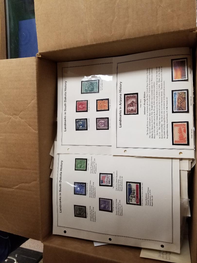 BOX LOT #6 (8. lbs.) Contains About 6,500 Stamps, Mostly Sorted on Stock Pages or Hinged on Pages, Nearly All are Used, Includes Many Airmail, Postage Due and Regular Issues, Includes Some "Famous Americans", Commemorative Issues and a Few Worldwide Stamps, Mostly Sound Cond., Mostly F-VF (Image)