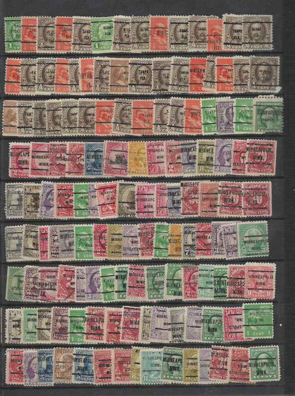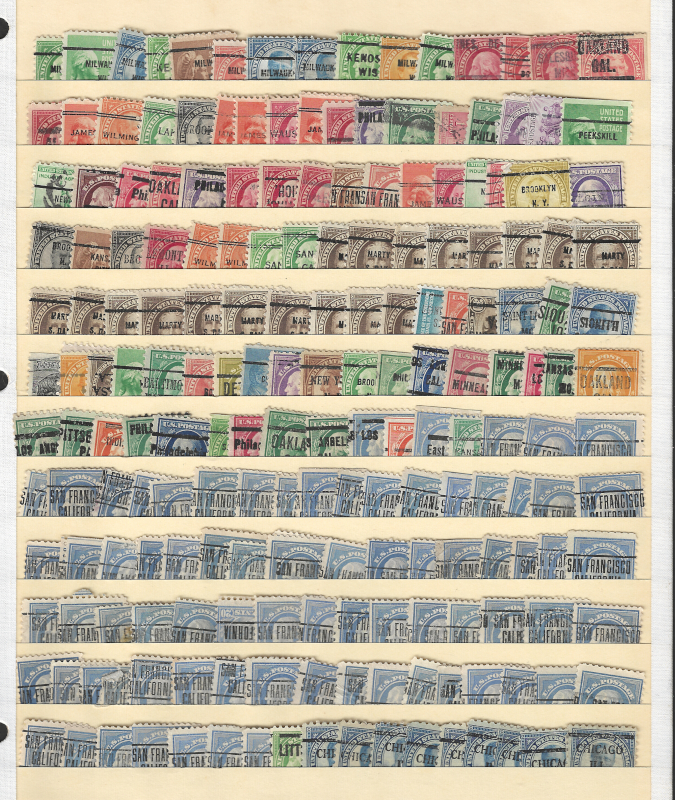 BOX LOT #3 (6. lbs.) Contains Over 11,000 Pre-Cancelled Stamps, Sorted on Stock Pages, Mostly Pre-1940 Issues, Includes Bureau & Private Pre-Cancels, Wide Variety of Diff. Stamps & City's, Mostly Sound Cond., Mostly F-VF (Image)