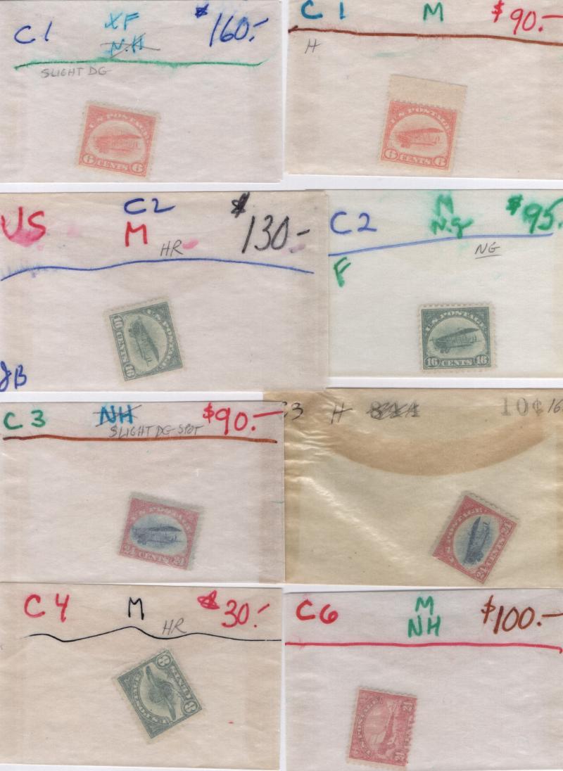 Accum (100s) */O 19/20th Cent, mainly airmails C1//C96, many PBKs, few commems & regs, couple foreign; sorted in IDed glassines incl unused #65 NH??, Columbians 232, 233, 234, PBKs NH 629, 644, 1331, 1341, C1 center line Blk, C1 (2), C2, C2 NG, C3 (2), C4, C5 DG, C6, C6 NH (2), C13 SP Graf Zeppelin, C18, C18 NH, used incl 11A, C18; plus Danzig C31-35 NH & Prince Edward Is 6 NH; cond varies, few small flts, Avg-XF, most VF (Image)