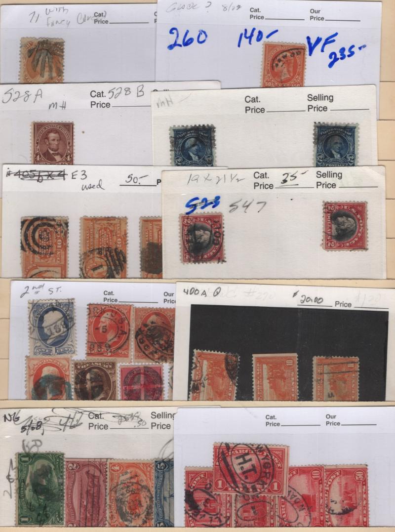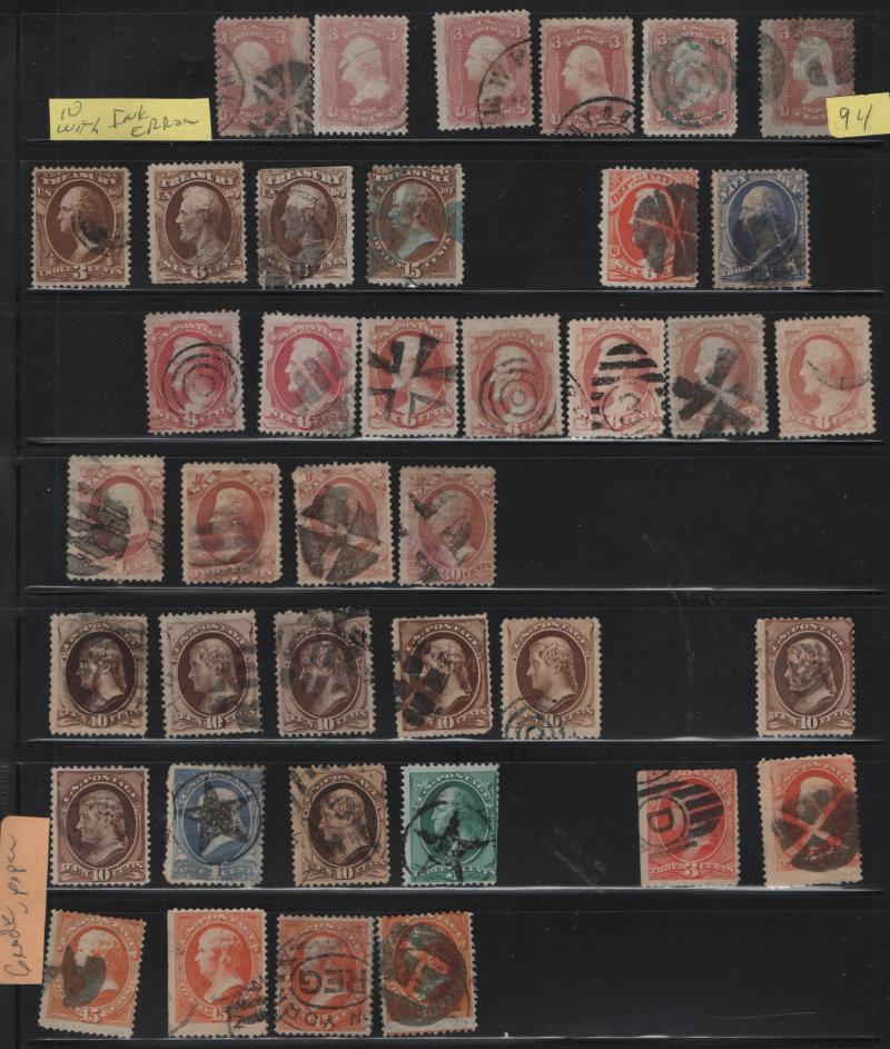 Accum Used many (100s) 1850s-1930s in album & stkbk; incl owner IDed #9, 35 (5), 71, 94, 97 (2), 100 RP w/ double grill, 101 RP, 113 (3), 115 (2), 116 (3), 117 (2), 119 (3), 121 flt, 219-28 w/ dup, 229, 246-51 w/ dup, 253-58 w/ dup, 259 (3), 260, 264-74 w/ dup, 275 (2), 276, 276A, 374-82 (2+), 411 LP (2), 414-23, 424-40, 468-78, 479, 480 (2), 506-18, 551-73, to Parks & Farleys, CV well over $7,500 (NV); cond mixed, flts to much sound, Avg to XF, gen F-VF