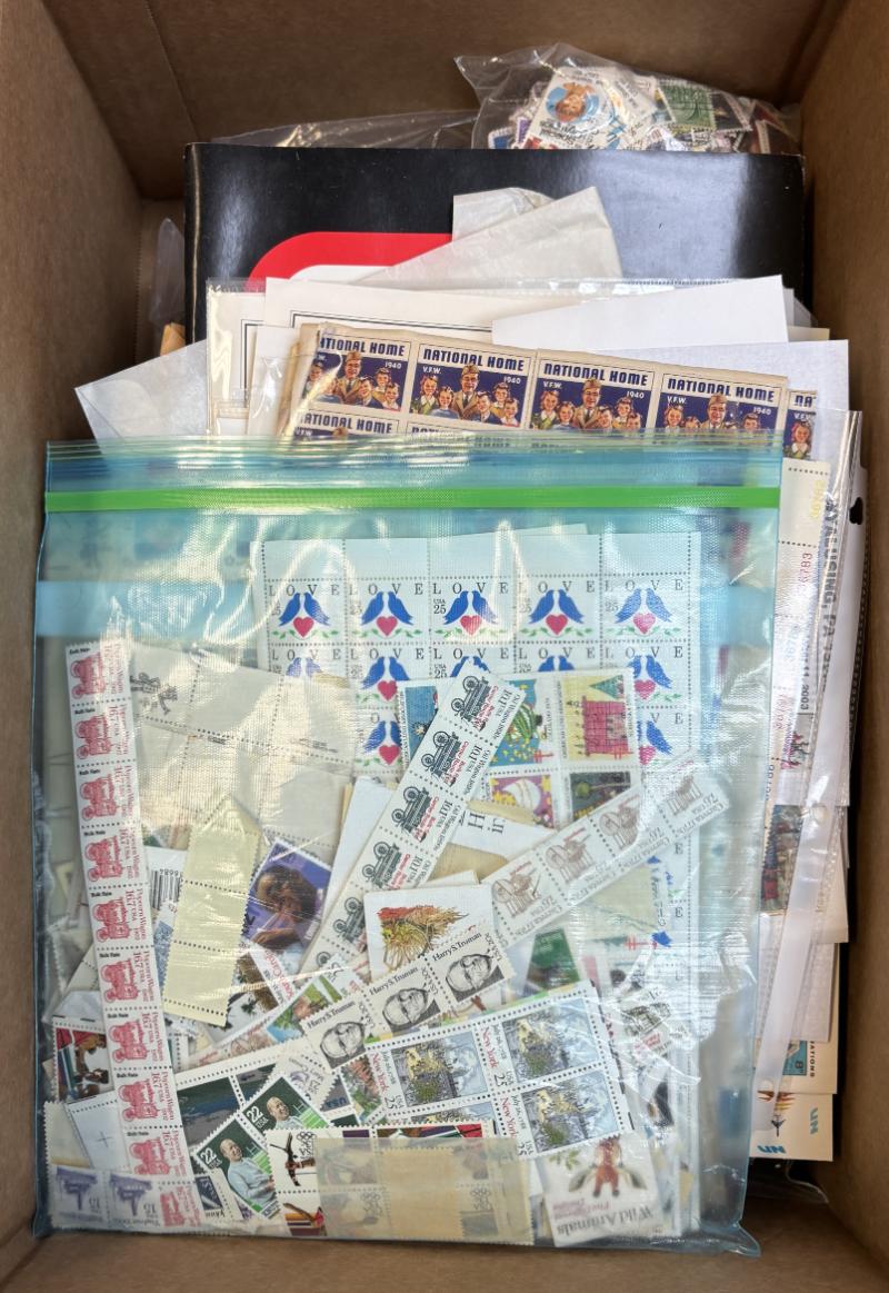 Accum (1000s) mainly unused w/ bulk of value in unused FOREVER stamps over (1000) incl Blks, sheets & other material of the period, some used, cvrs, postal stationery & more, gen F-VF NH (Image)