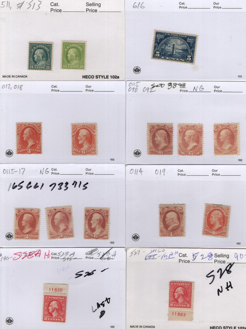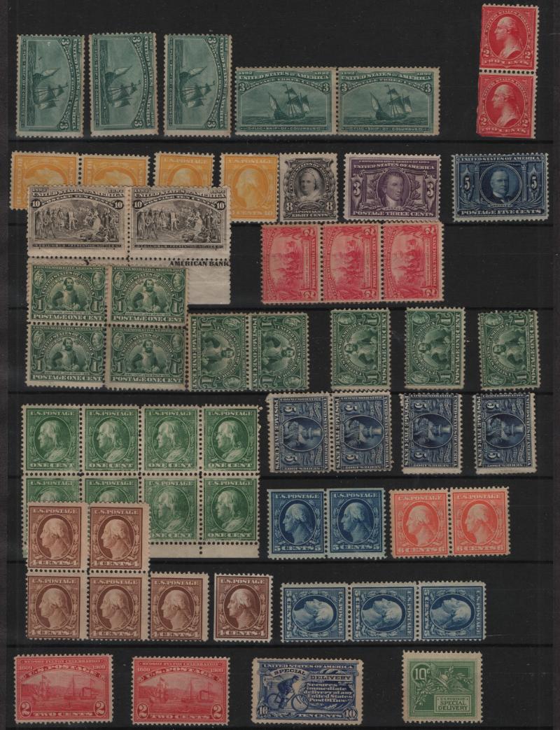 Unused Stock #230//833, commems incl Columbians thru Washington Bicentennial, defins incl 4th Bureau & Prexies, some heavy dup, largely NH, few flts, Avg-VF (Image)