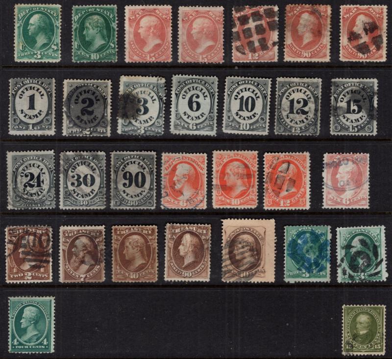 Accum */O over (200) 19/20th Cent, sorted on stkpgs; classics, 1869s, Bknts, Bureaus, Wash/Frank, BOB incl ducks, officials, newspapers & few M&Ms; incl unused #238, 298, 323-27, 1053, 1295, C1, C3, C4-6, E8 (2), E9 NH, RW5 NG, RW8, RW11 DG, RW16 NH; used incl #63, 68, 76 (2), 77 (2), 117, 228 (2), 294-99, 310, C3, O3 NG, O37-38, O41 (2), RW9 (2), RW10 (2), RW12 (2); cond varies, most sound, some SE, NG/DG, RP, Avg to VF, gen F-VF (Image)