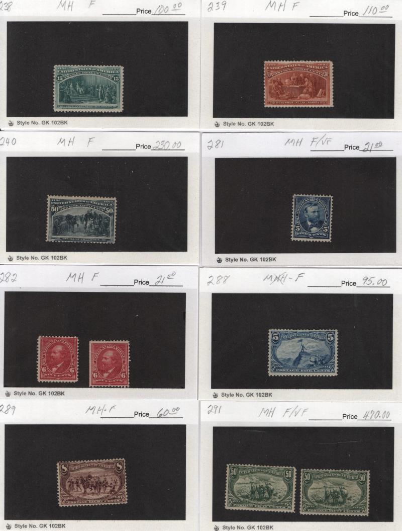 Unused Stock few (100) #233//701 on 102 & 107 cards incl #238, 239, 240, 288, 289, 291 (2), 296 (2), 298 (2), 399 (2), 550 NH (2), 692-701; few flts, Avg to VF (Image)