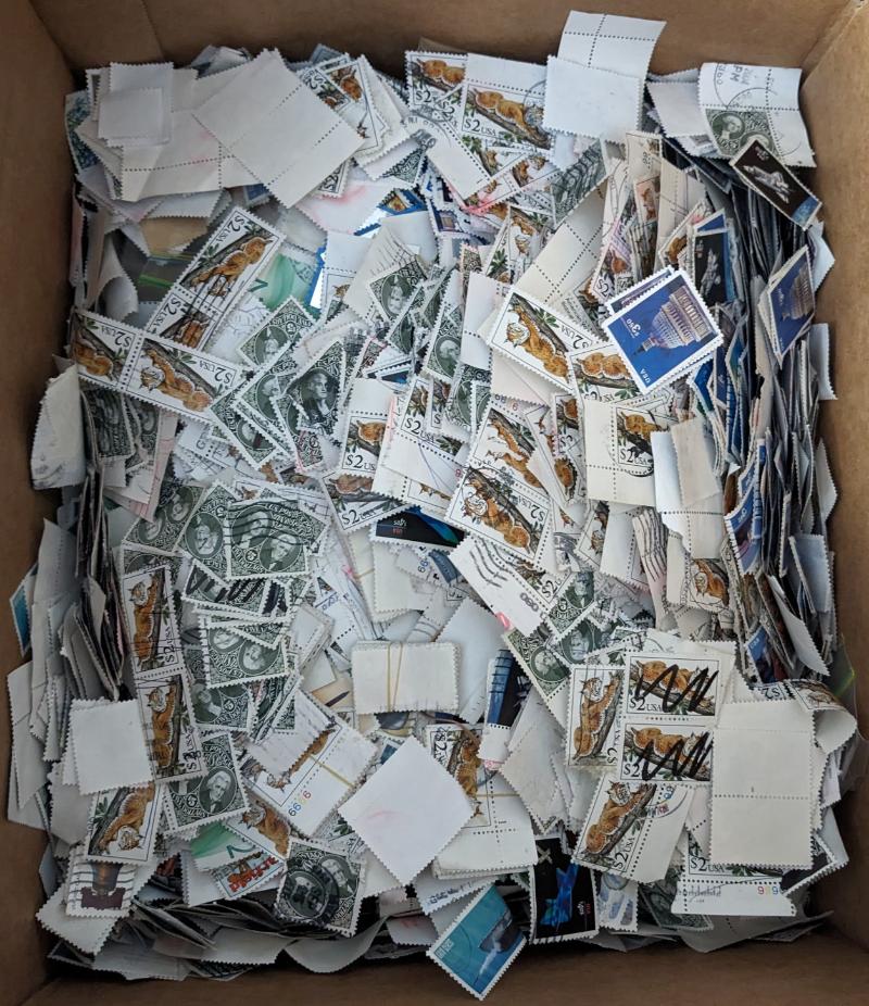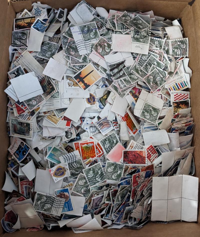 Abt 19 lbs mainly off paper w/ mix of defins, commems & Christmas, possible WW mixed in, some heavy dup; few flts but gen F-VF