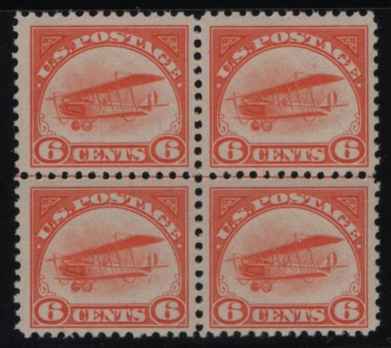 C1 VF NH, Block, 6¢ orange Curtiss Jenny (Image)