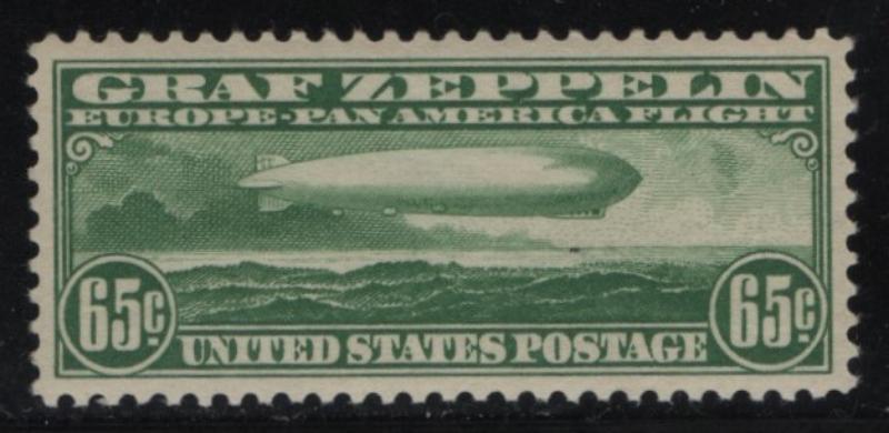 C13 XF Zeppelin 65¢ green, fresh, Scott by Grade for XF is $450 (Image)