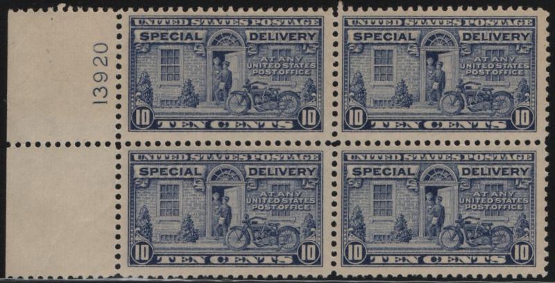 E12a VF NH, Block, 10¢ deep ultramarine, left margin Blk w/ pl# 13920 (Image)