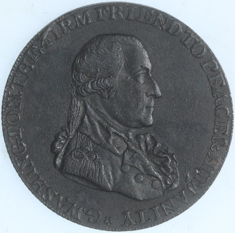 1795 Conder Token "G. Washington the Firm Friend to Peace and Humanity" by Clark & Harris. (Image)