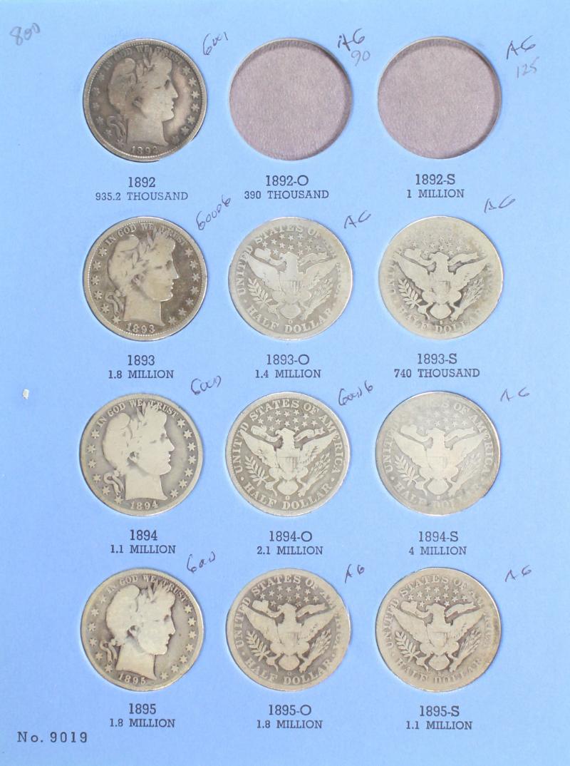 (33) Diff 1892 // 1903-S arranged in a Whit 9019 folder missing only 92-O, 92-S, & 96-S. Mostly AG to G+, keys are at the lower end, commons better. (Image)